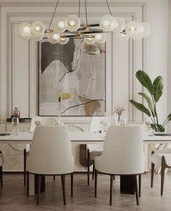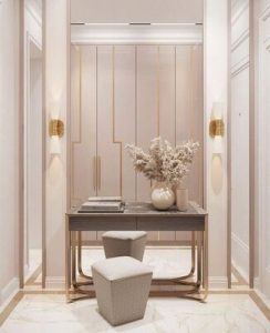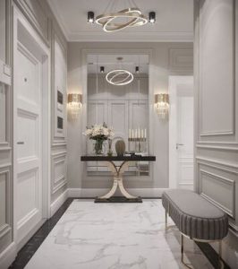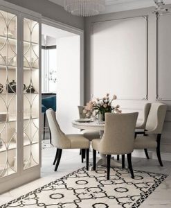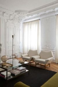ამგვარ ინტერიერში იკვეთება ანტიკური სტილი თავშეკავება, სიმეტრია, და დახვეწილობა.