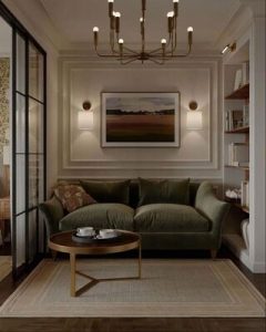 მისაღები ოთახი, როგორც წესი, ყველაზე ფართო ოთახია სახლში, ასევე უფრო ადვილია ბუნებრივი განათების უზრუნველყოფა. ელეგანტური შრიალა შანდალი მოოქროვილი ელემენტებით და ბროლის ჩამოსაკიდები დაამშვენებს მისაღები ოთახის ინტერიერს. იატაკის ნათურები ოთახში დამატებით აქცენტს გააკეთებს. ბრინჯაოს საათი, მძიმე იატაკის ვაზები ხელს შეუწყობს მისაღები ოთახის ხელოვნების ინტერიერში კლასიციზმის გამოყოფას.